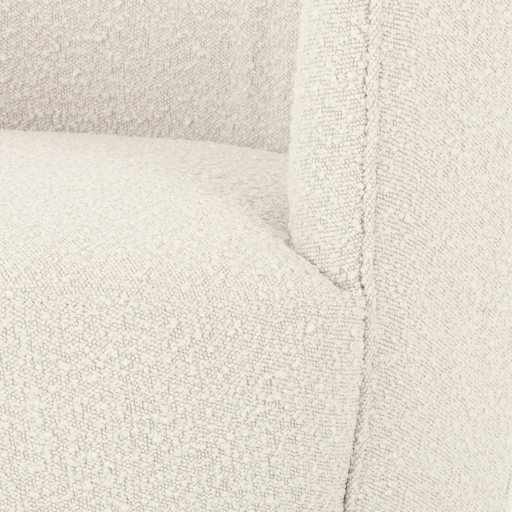 The perfect swivel chair for smaller spaces. Drum-style seating is upholstered in a soothing and textural boucle. Available in both ivory and blue.